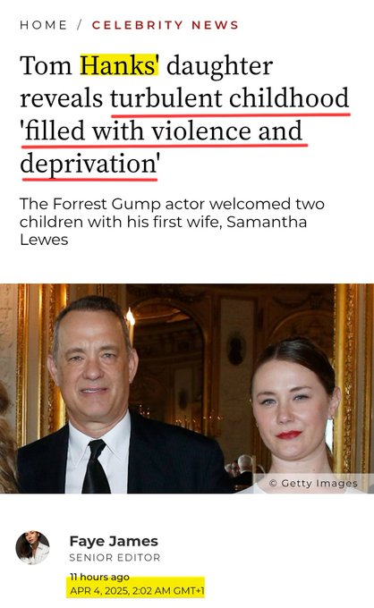 Do you believe in coincidences? Only just the beginning. “HANK TOUGH” Multiple stories out today about the ABUSE of Tom Hanks’ daughter? Timestamp 857. Do you believe in coincidence?