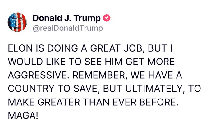 If that wasn’t enough, Trump has Tweeted that Elon needs to be more aggressive. You can’t make this up and I’m howling at this point. What a movie.