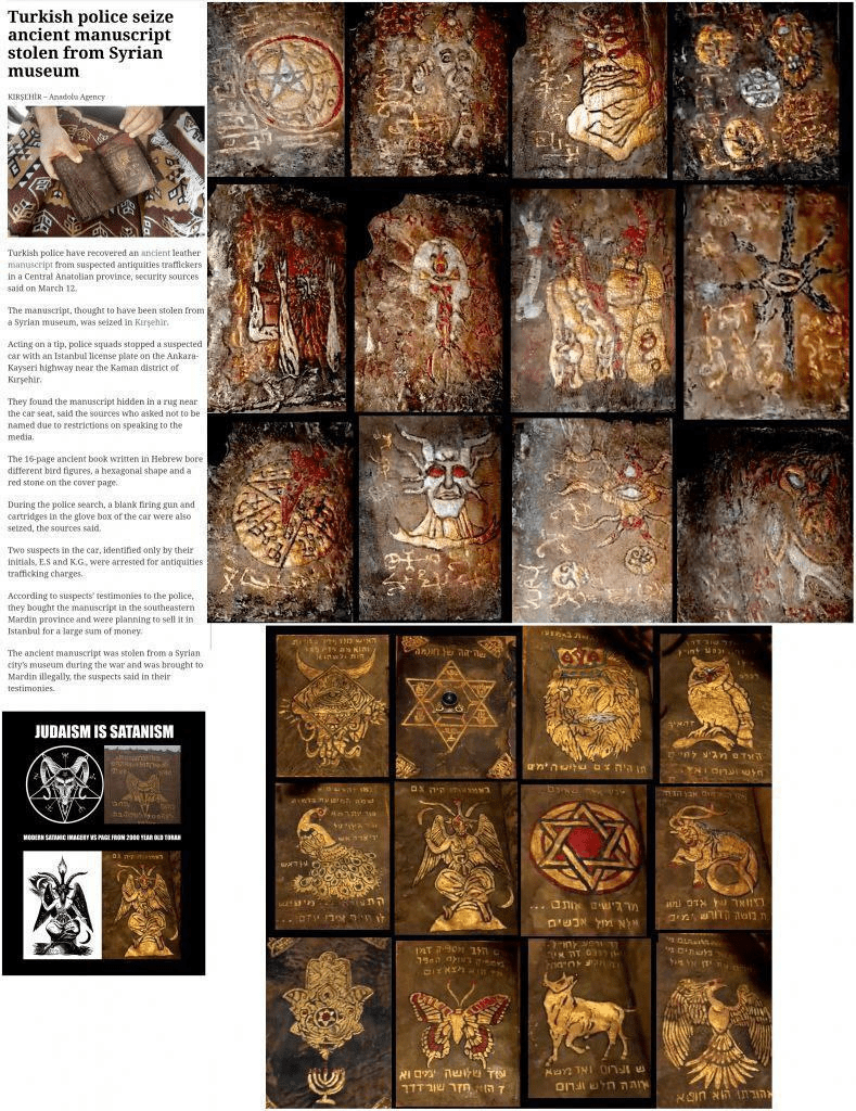 Clear evidence we are dealing with an ancient Satanic cult came when Turkish police confiscated Torah Scrolls decorated with Satanic Illuminati symbolism that were stolen from the 2000-year-old Synagogues of Satan in Syria.