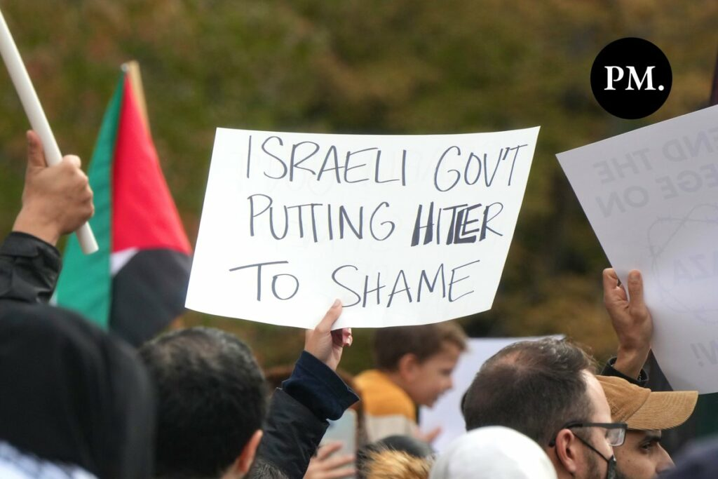 No wonder a sign that says “Israeli gov’t putting Hitler to shame” was spotted among anti-Israel protestors.