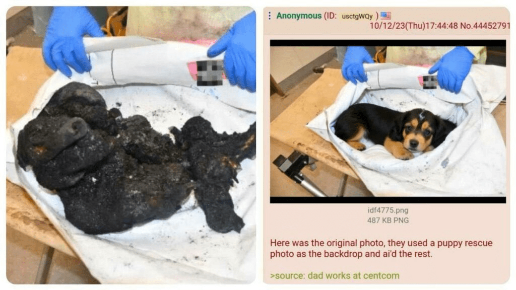 In another example, a fake photo of the “horrors of Hamas” made by artificial intelligence, shared by American columnist Ben Shapiro and the PM of Israel himself, originally showed a dog.