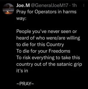 It speaks to the severity of the problem in the storm’s aftermath and the need for serious intervention. We have heard the military will be deployed in the execution of “The Storm” and these are valid scenarios that would make sense to people to have boots on the ground, which has to happen somehow anyway.