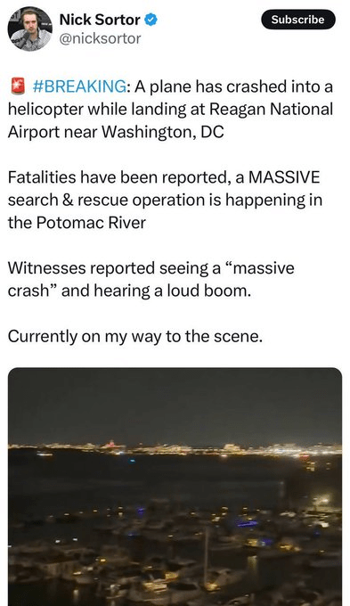 Dave’s post about the mid-air collision in Washington on Telegram: